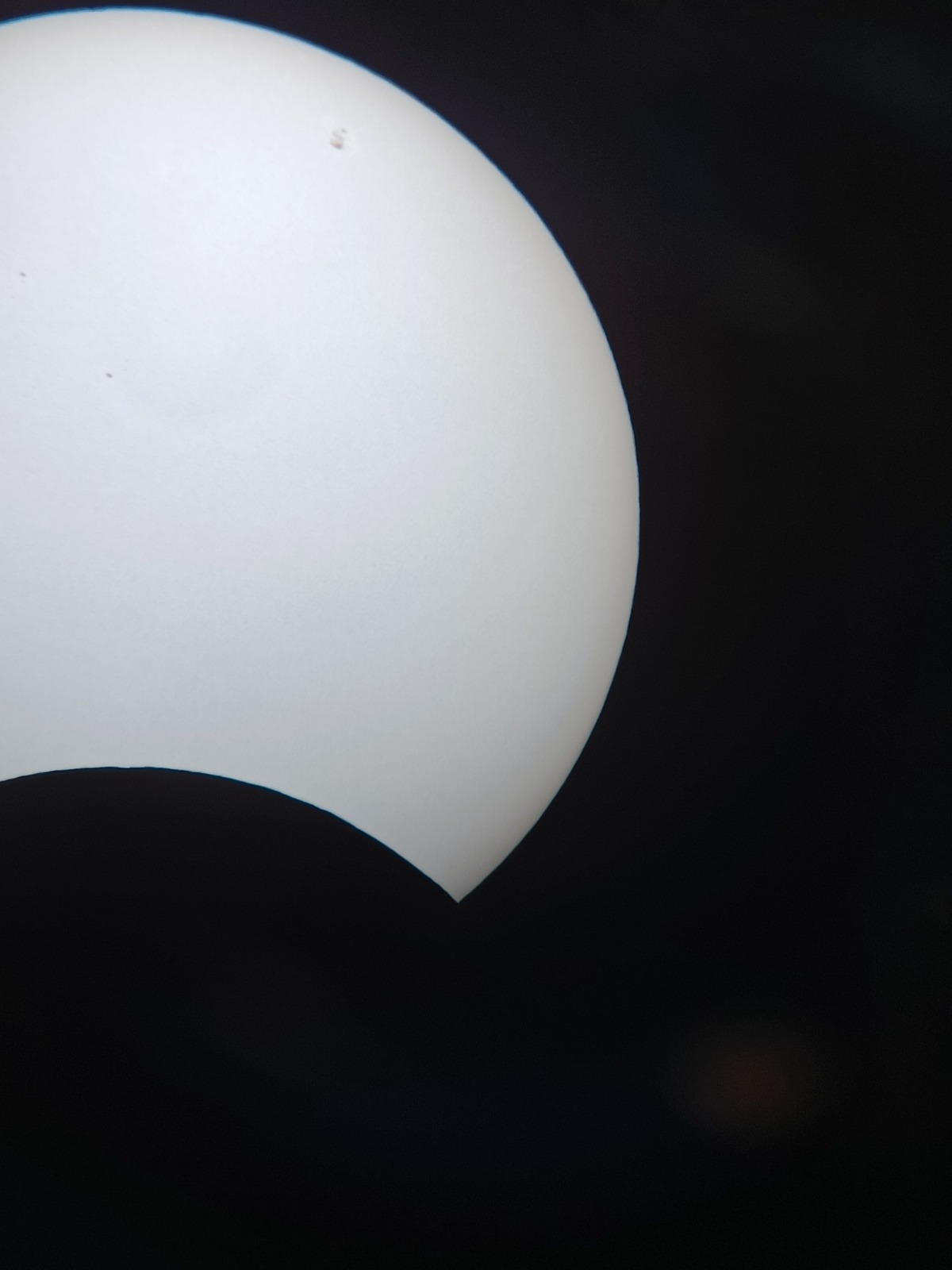 Unser C8 Studententeleskop mit dem Weißlichtfilter zeigte uns sogar einige kleine Sonnenflecken, die ich mit meinem Mobiltelefon einfangen konnte.